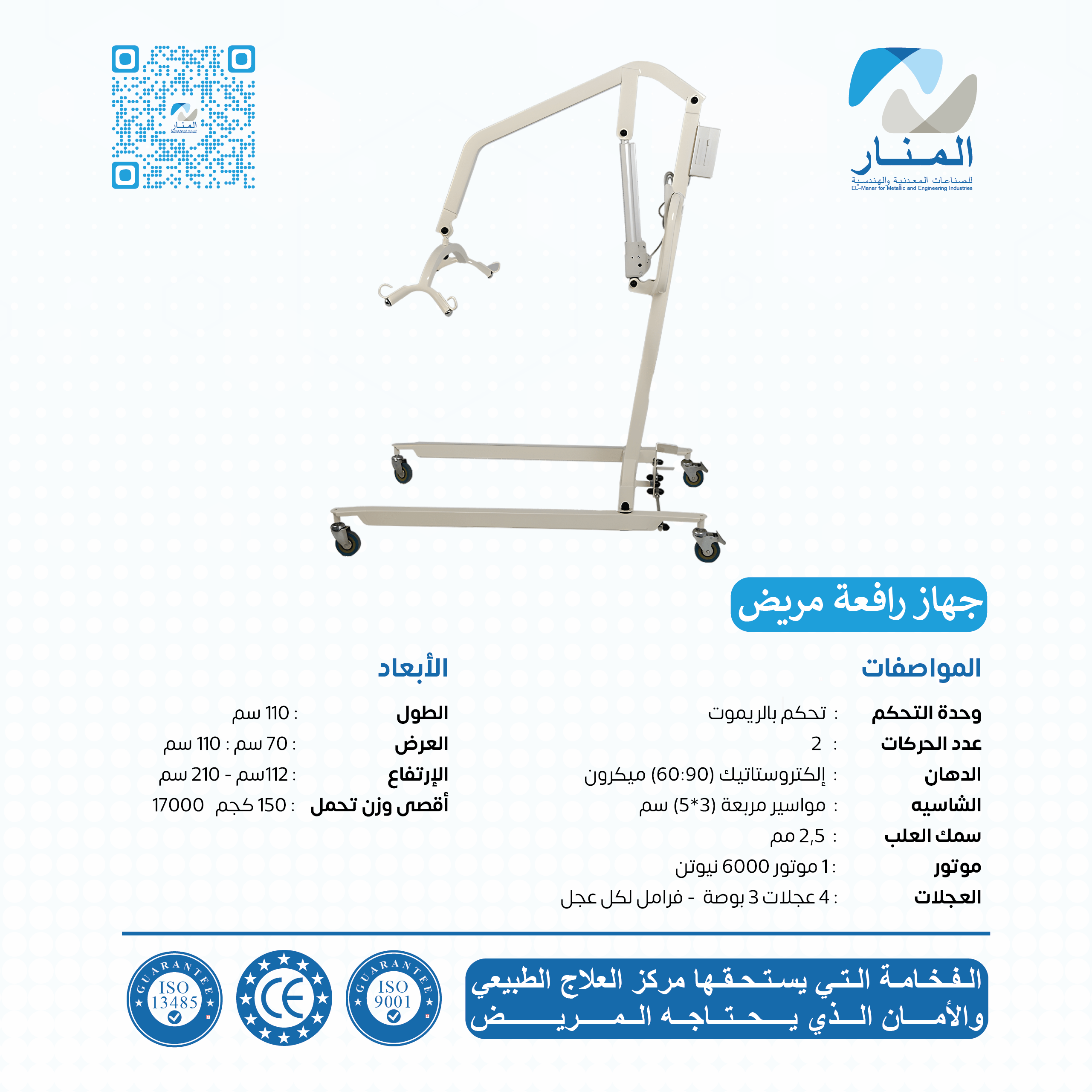 يُعد جهاز رافعة المريض الكهربائية بالريموت من أهم الأجهزة الطبية في المستشفيات ومراكز العلاج الطبيعي ودور الرعاية، حيث يُستخدم لرفع ونقل المرضى بسهولة وأمان كاملين دون أي مجهود بدني.