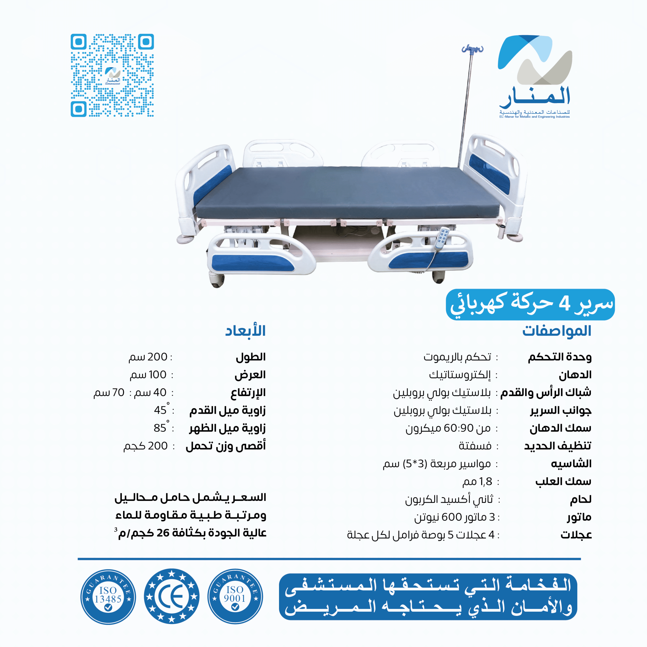 يُعتبر السرير الطبي الكهربائي 4 حركة الحل الأمثل لكل من يبحث عن راحة المريض وسهولة العناية، سواء للاستخدام المنزلي أو في المستشفيات.