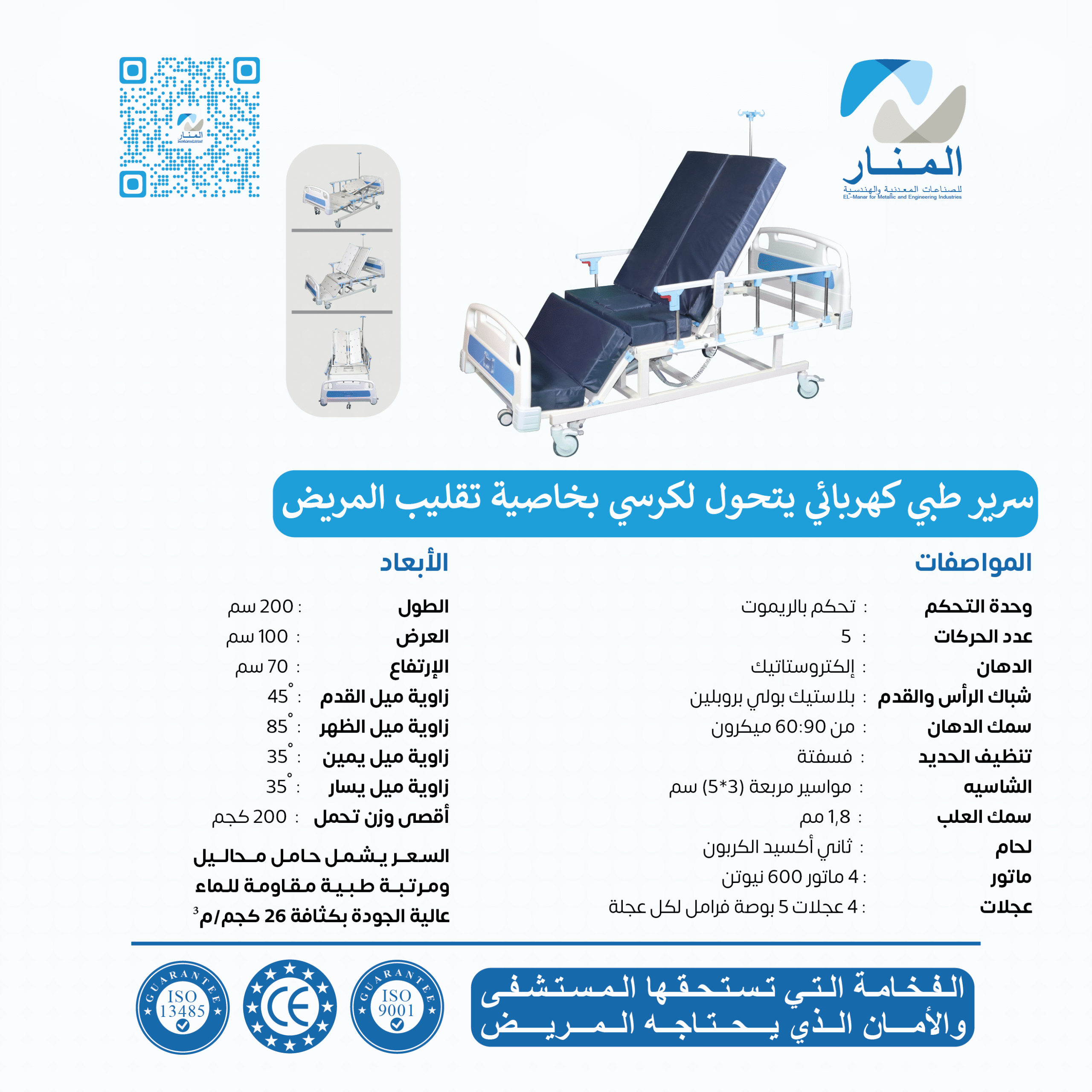 يتحول إلى كرسي كهربائي لراحة المريض وسهولة الرعاية.