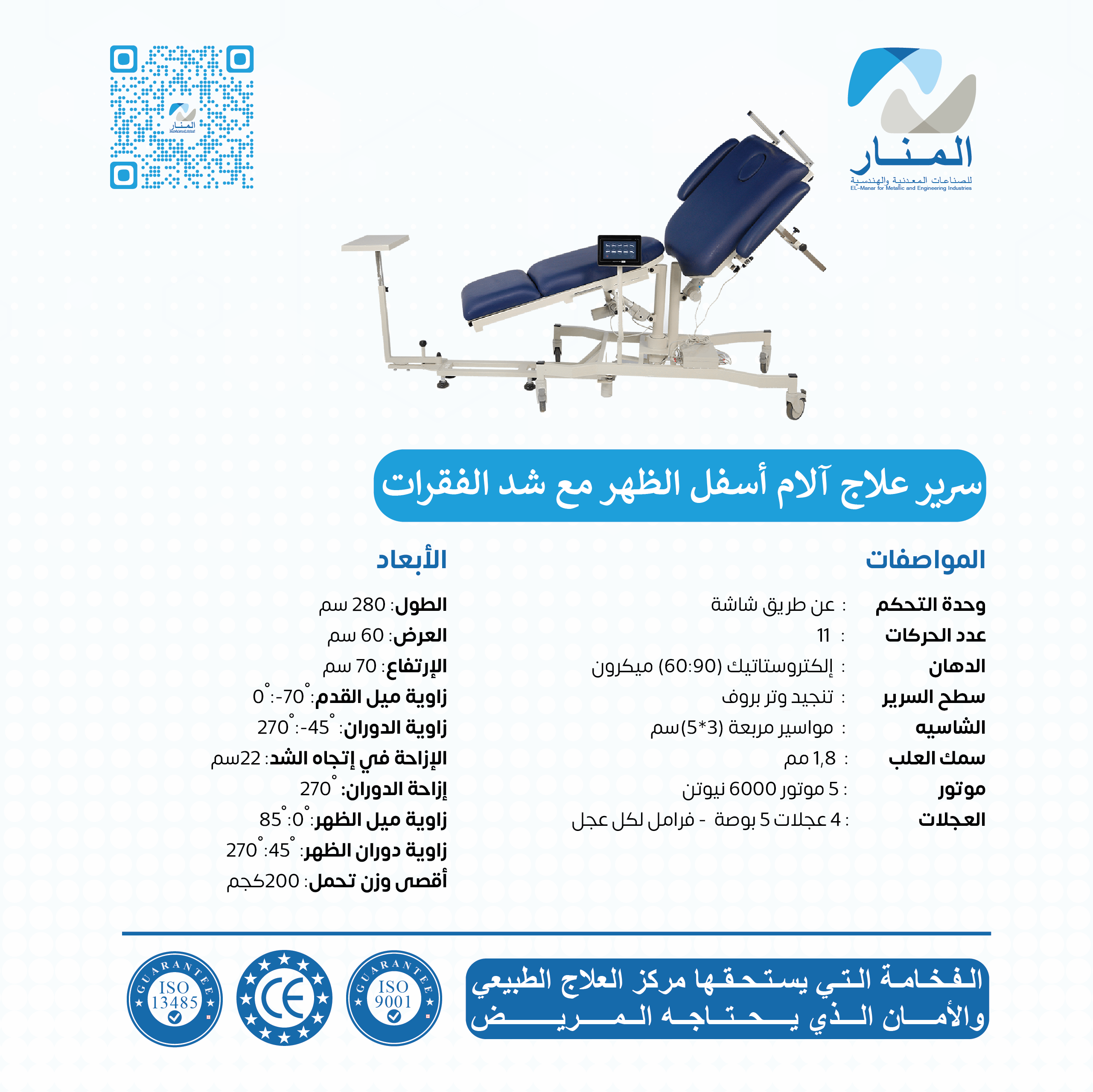 سرير علاج آلام أسفل الظهر مع شد الفقرات (Lumbar Traction Therapy Bed)